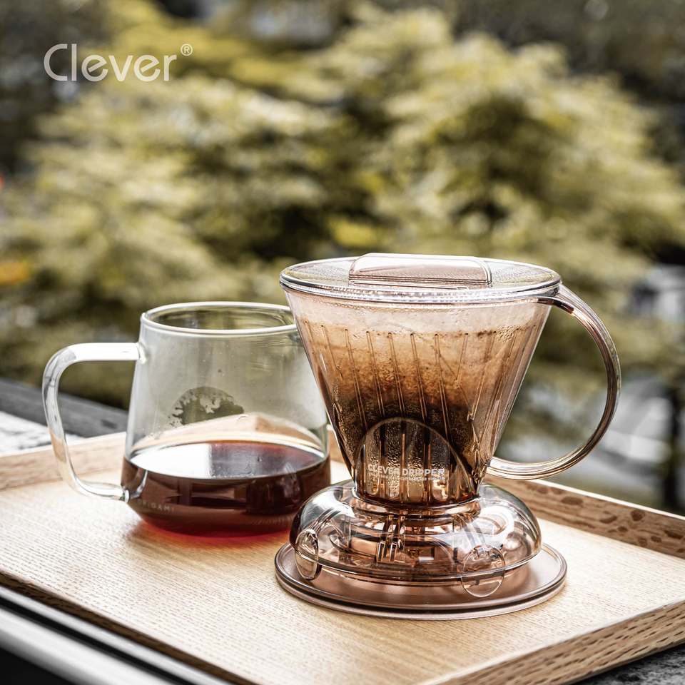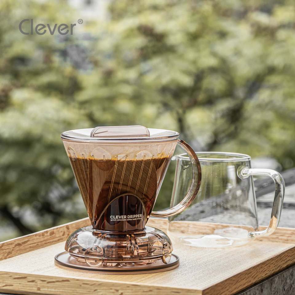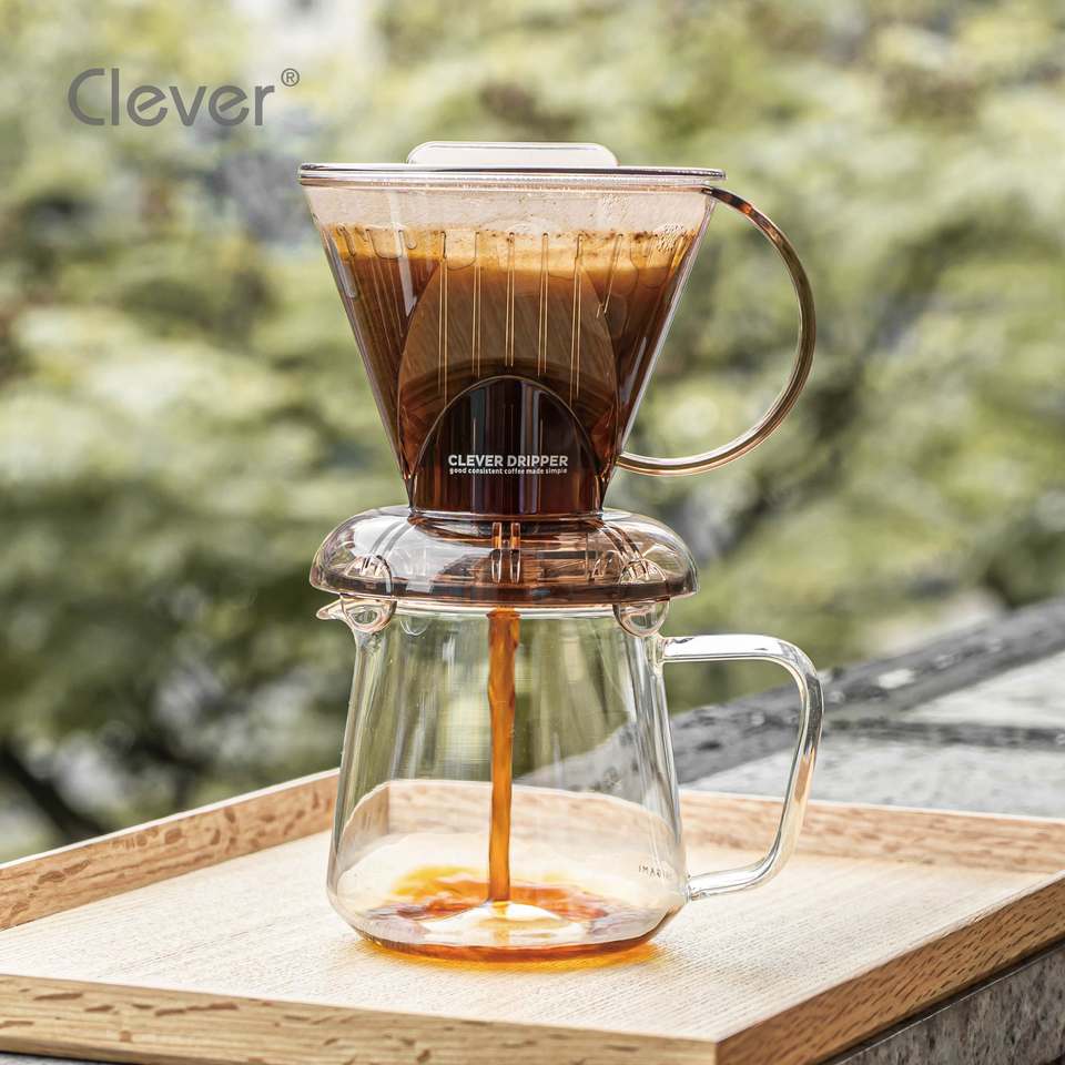 ที่รินน้ำแบบหยดทรงสี่เหลี่ยมคางหมูสีน้ำตาลใส Clever Dripper ขนาด 300 มล. ปลอดสาร BPA เป็นมิตรกับสิ่งแวดล้อม ทนทาน ผลิตจากพลาสติก เหมาะสำหรับร้านบูติก
