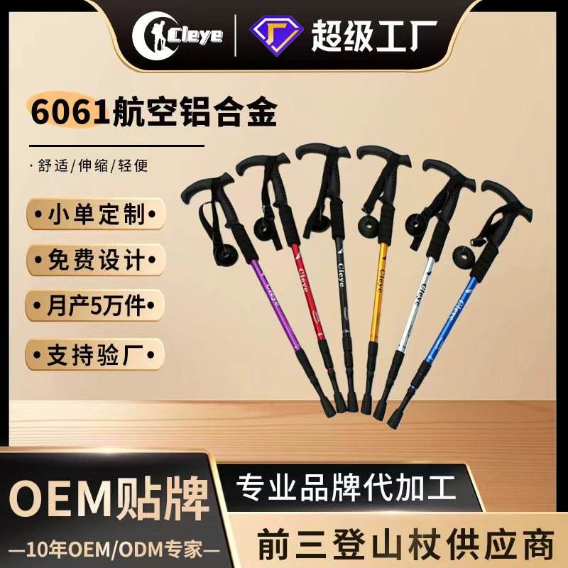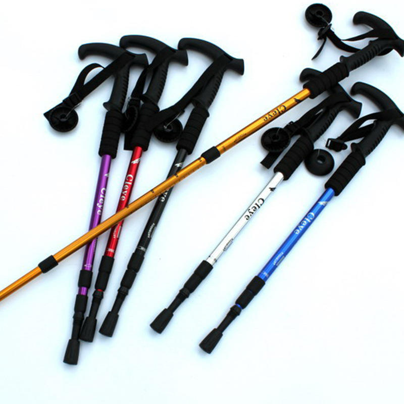 ไม้เท้าเดินป่าแบบยืดหดได้ อลูมิเนียมอัลลอยด์ ยี่ห้อ Cleye พร้อมด้ามจับรูปตัว T ป้องกันการกระแทก แบบสี่ท่อน