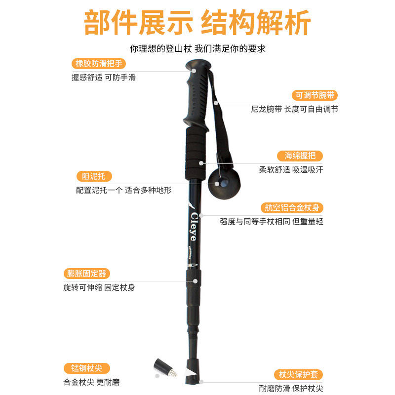 ไม้เท้าเดินป่า Cleye รุ่น 6061 ทำจากอลูมิเนียมอัลลอยด์ ปรับความยาวได้ น้ำหนักเบา กันลื่น เหมาะสำหรับกิจกรรมกลางแจ้ง แบบสี่ท่อน