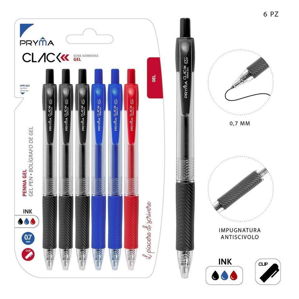 Click pens 0.7mm 6-pack in assorted colors - Writing tools