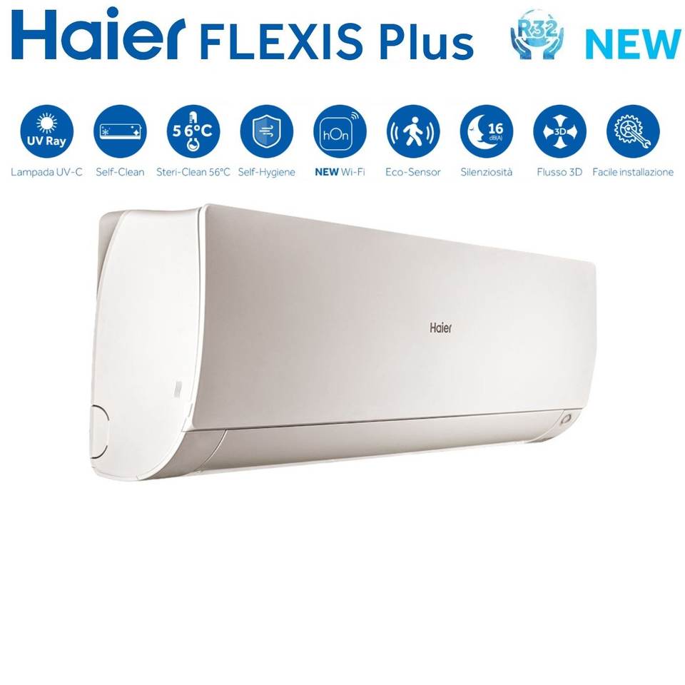 Climatizatore condizionatore Haier อินเวอร์เตอร์แยกทดลองเป็น Flexis PLUS White 7 + 9 CON R-32 Wi-Fi integrato Colo
