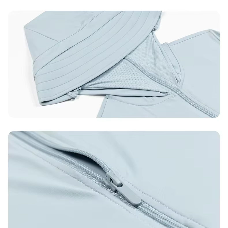 เสื้อแจ็คเก็ตฮู้ดดี้กันแดด UPF 50+ สำหรับผู้หญิง ทรงเข้ารูป น้ำหนักเบา แขนยาว พร้อมหน้ากาก ป้องกันหิมะ เหมาะสำหรับปีนเขา ตั้งแคมป์ เดินป่า วิ่ง