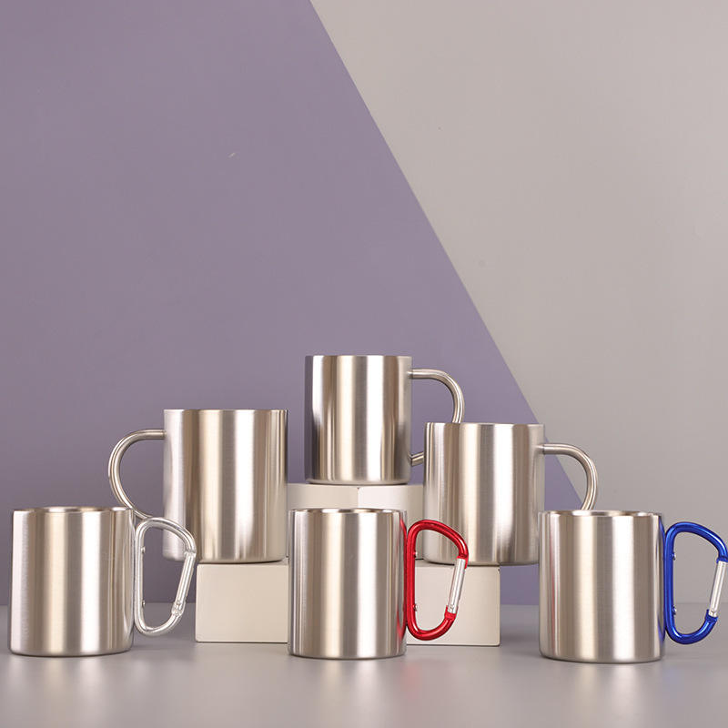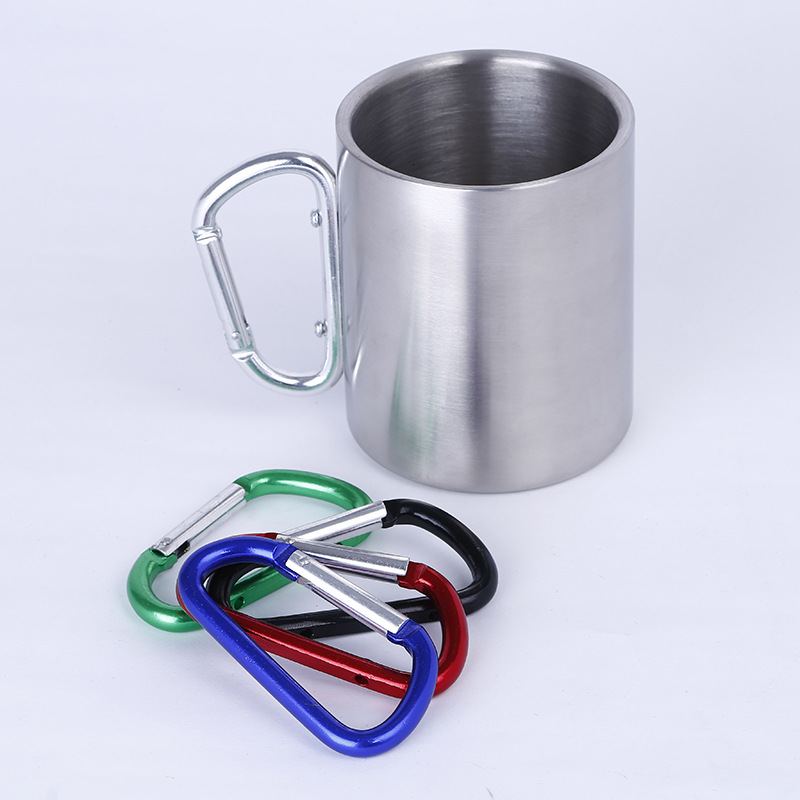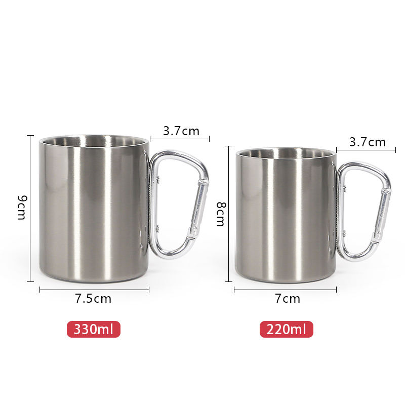 แก้วน้ำเก็บความร้อนแบบพกพา สแตนเลส ขนาด 220/300 มล. พร้อมหูจับและฝาปิด สำหรับตั้งแคมป์ เดินป่า ท่องเที่ยวกลางแจ้ง พร้อมคาราไบเนอร์
