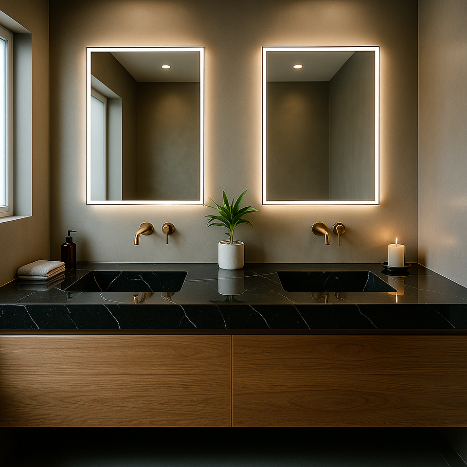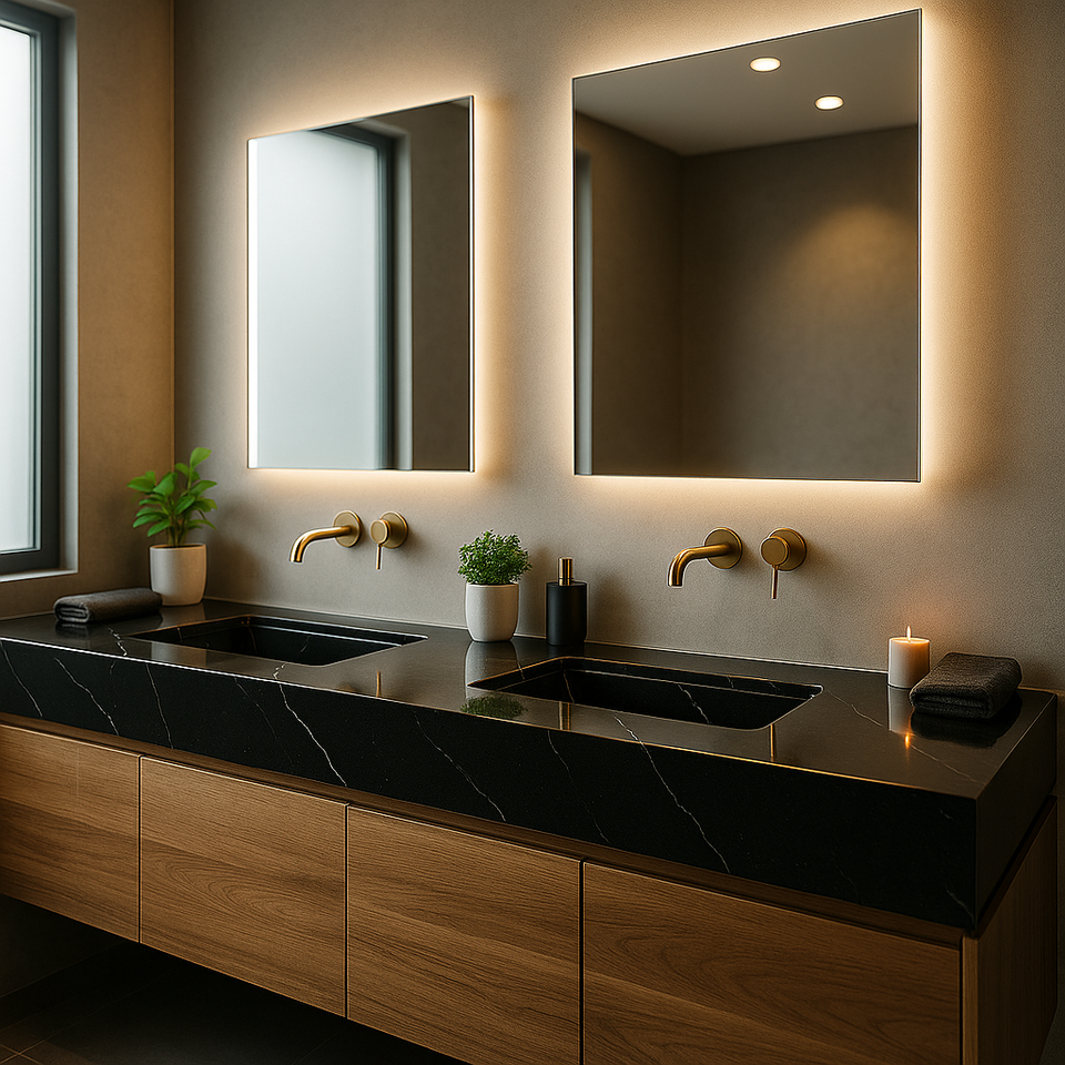 ClioStones BS 3 ท็อปโต๊ะเครื่องแป้งพรีเมียมทันสมัย สีดำ ฐานควอตซ์ ตัดตามขนาด หนา 20 มม./30 มม. กันน้ำ สำหรับใช้กับผนังหรือพื้น