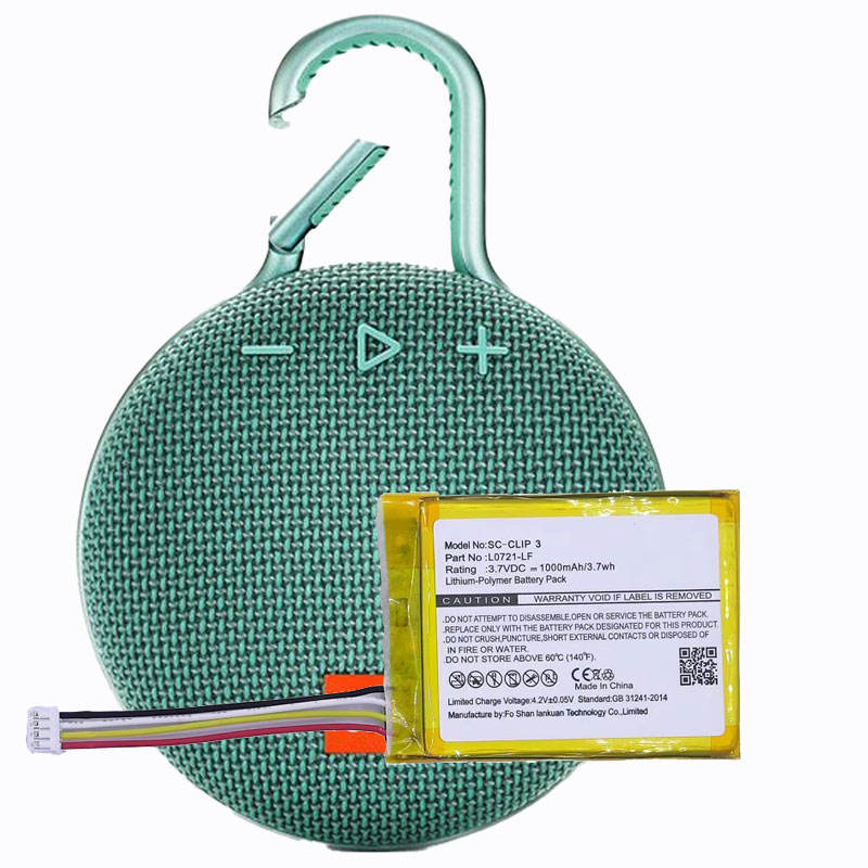 แบตเตอรี่เปลี่ยนทดแทนสำหรับลำโพง Clip 3 กำลังไฟแรง 1000mAh รุ่น Clip 3AN/3SAND L0721-LF สำหรับลำโพงบลูทูธ JBL Clip3