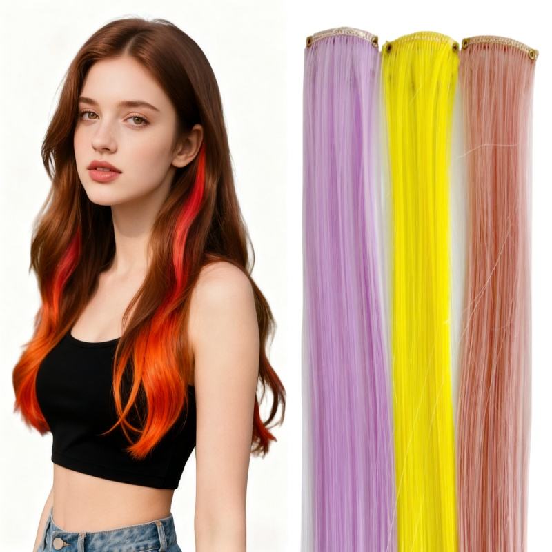 ผมต่อแบบคลิปหนีบผมยาวตรงสำหรับเด็กผู้หญิงผมต่อแบบคลิปในหลายสีสำหรับปาร์ตี้ไฮไลท์ผมสังเคราะห์สำหรับสาวๆ