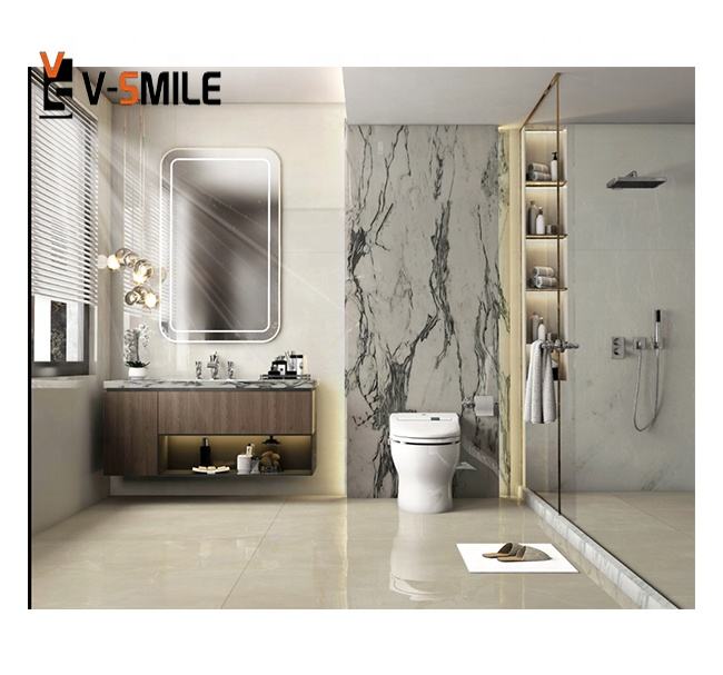Clivia แผ่นหินอ่อนสีขาวและกระเบื้องที่มีเส้นเลือดสีเขียวและกระเบื้องปูพื้นห้องน้ำ Clivia โต๊ะเครื่องแป้งสีขาวด้านบน