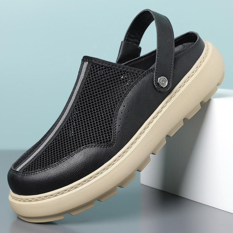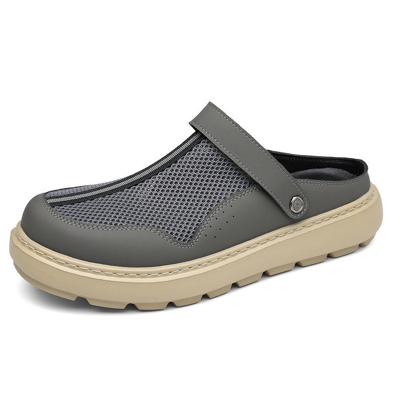รองเท้าแตะผู้ชายแบบระบายอากาศได้ดี เหมาะสำหรับฤดูร้อน ใส่เดินชายหาด สีเทา สีดำ แบบสวมสองด้าน ไซส์ผู้ใหญ่ 38 39 40 41 42 43 44