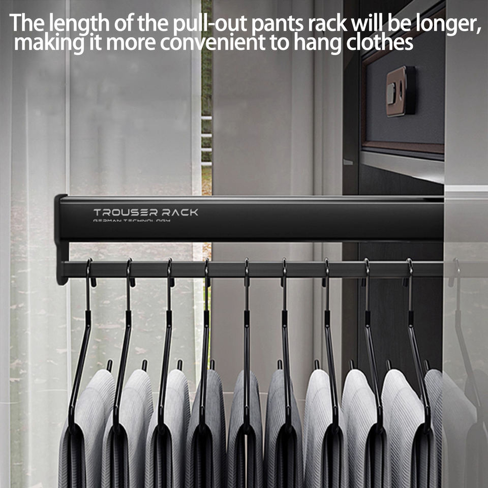 ราวแขวนกางเกงแบบยืดหดได้ในตู้เสื้อผ้า ราวแขวนเสื้อผ้าแบบติดตั้งด้านข้างในตู้