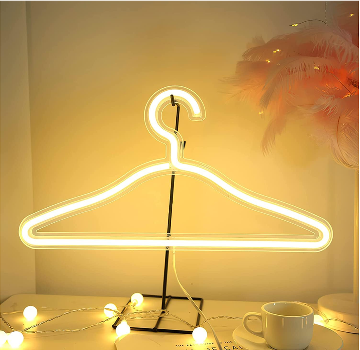 Clothes Display Stand Acrylic Hanging Neon Light Usb Powered Led Coat Hanger Neon Signs for Wall Shop Room Wedding Party Decor