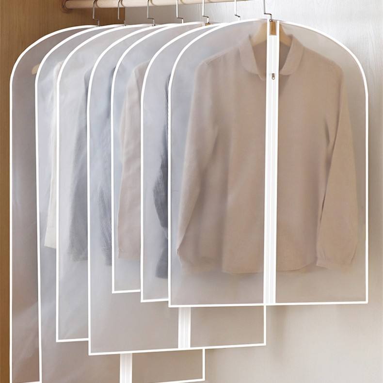 ผ้าคลุมกันฝุ่นสำหรับเสื้อผ้า แบบตะขอรูปสี่เหลี่ยมผืนผ้า ขอบสีขาว สำหรับเดินทาง ห้องนอน เก็บเสื้อสูท ป้องกันเสื้อโค้ท