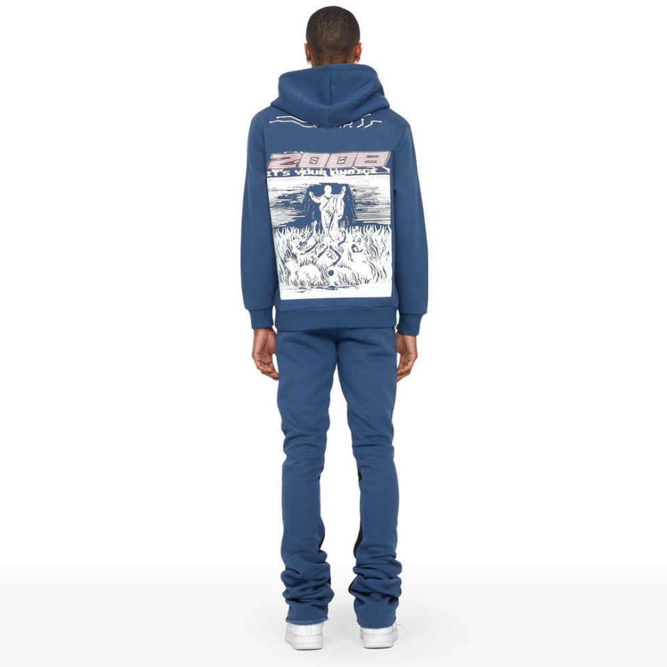 ชุดวอร์มสองชิ้นของผู้ชายชุดวอร์มผ้าฝ้าย100% สตรีทแวร์กางเกงวอร์มขาบานสำหรับฤดูหนาว