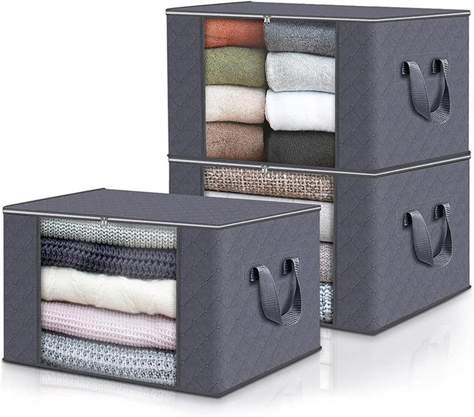 ที่เก็บเสื้อผ้ากระเป๋าเก็บผ้าห่มพับได้สำหรับจัดระเบียบห้องนอนเสื้อผ้าการจัดระเบียบและการจัดเก็บที่มีฝาปิดและที่จับ