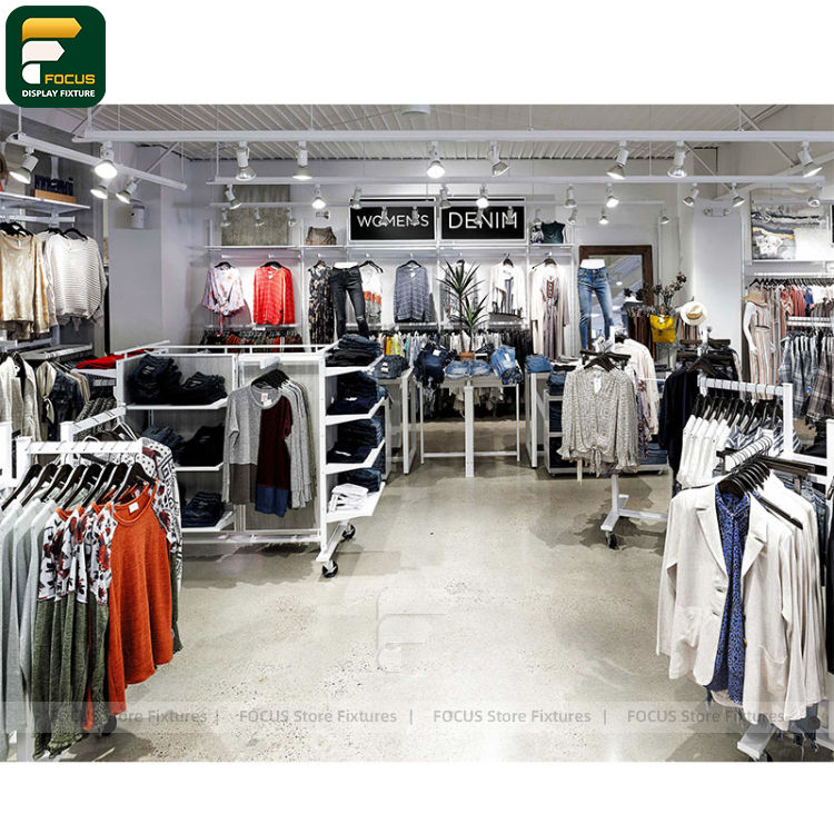 ชั้นวางเสื้อผ้าสำหรับร้านขายเสื้อผ้าเด็ก ชั้นวางเสื้อผ้าสำหรับร้านค้าปลีก ดีไซน์อุปกรณ์จัดแสดงเสื้อผ้า