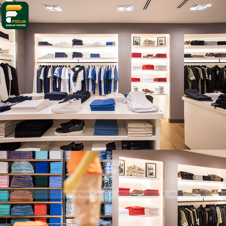 ราวแขวนเสื้อผ้าแบบปรับแขนได้ ชั้นวางเสื้อผ้าสำหรับร้านค้าปลีก ดีไซน์อุปกรณ์จัดแสดงเสื้อผ้า