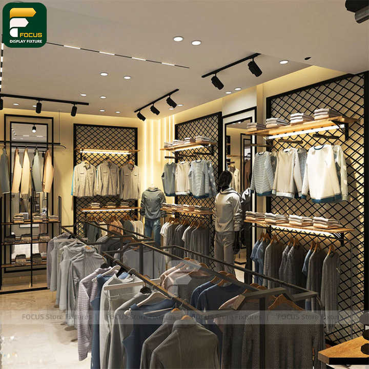 ชั้นวางเสื้อผ้าพร้อมไฟในตัว ชั้นวางเสื้อผ้าสำหรับร้านค้าปลีก ออกแบบสำหรับร้านเสื้อผ้า
