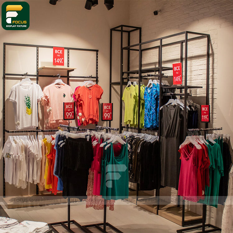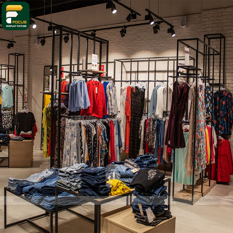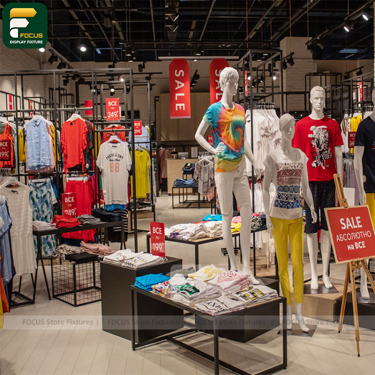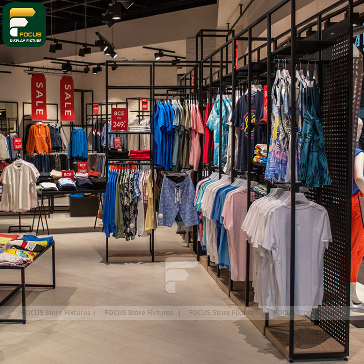 ชั้นวางเสื้อผ้าแบบหลายโซนสำหรับจัดแสดงสินค้าในร้านค้าปลีก