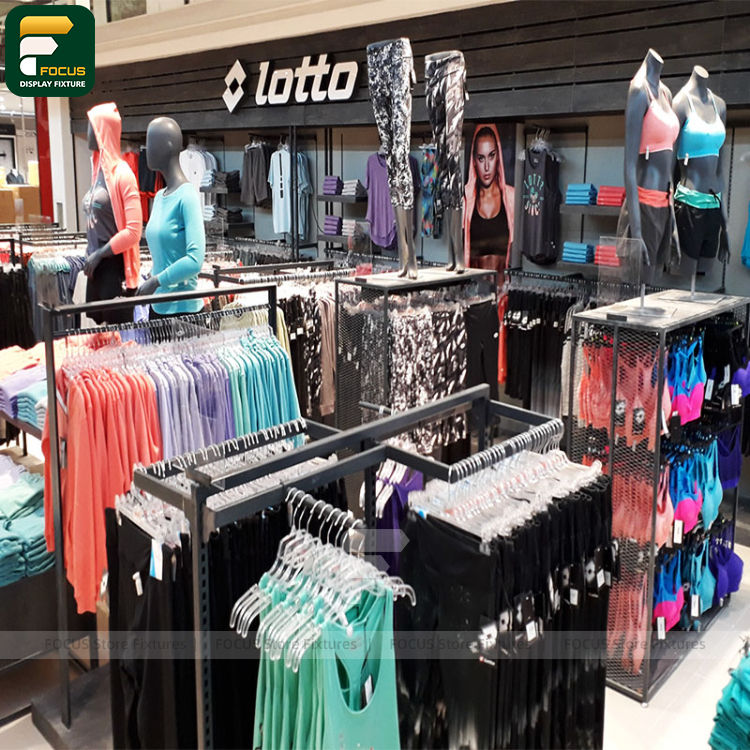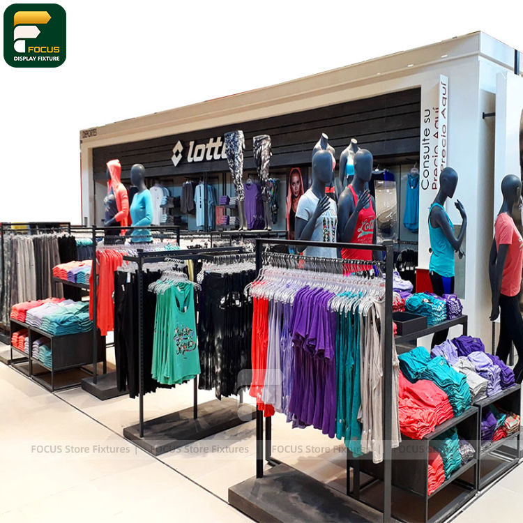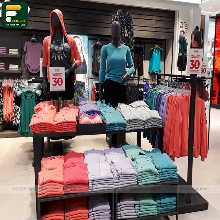 ชั้นวางเสื้อผ้าพร้อมชั้นเก็บของ ชั้นวางเสื้อผ้าสำหรับร้านค้าปลีกเสื้อผ้า