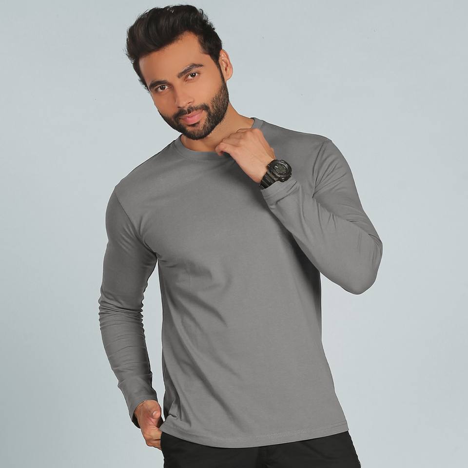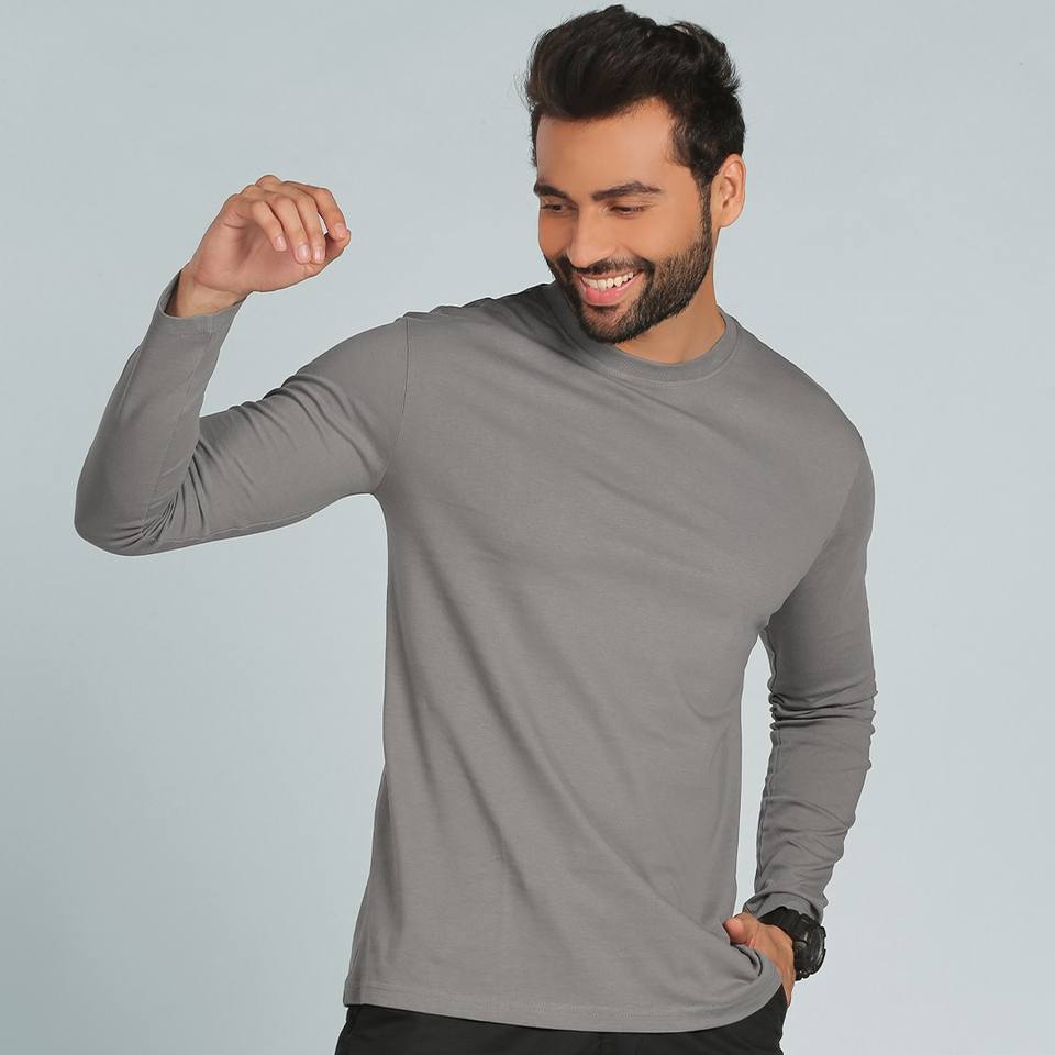 เสื้อยืดคอกลมแขนยาวทรงโอเวอร์ไซส์สีพื้นผ้าหนา 250 กรัม ผลิตตามสั่งจากโรงงานเสื้อผ้า สำหรับผู้ชาย