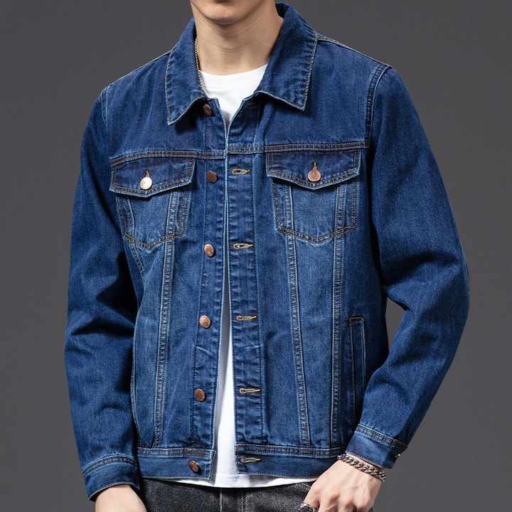 เสื้อแจ็กเก็ตยีนส์แฟชั่นสำหรับผู้ชายเสื้อแจ็กเก็ตลำลองทรงหลวมทันสมัยทันสมัยมีคุณภาพสูง