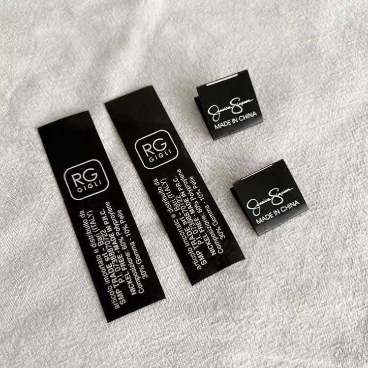 ผู้ผลิตอุปกรณ์ตกแต่งเสื้อผ้า รับทำป้ายริบบิ้นซาตินพิมพ์สองด้าน พร้อมข้อความชื่อ คำแนะนำการซัก ขนาด สำหรับเสื้อยืด