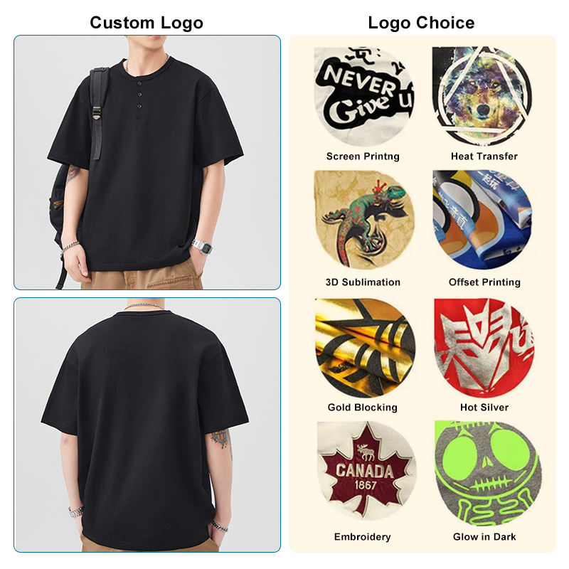 เสื้อฮีนลีย์ผลิตตามสั่ง ผ้าเปล่า 250GSM หนัก น้ำหนักมาก ผ้ายืด/ไนลอน แห้งเร็ว เสื้อผ้าสตรีทแวร์ แขนสั้น ยูนิเซ็กซ์