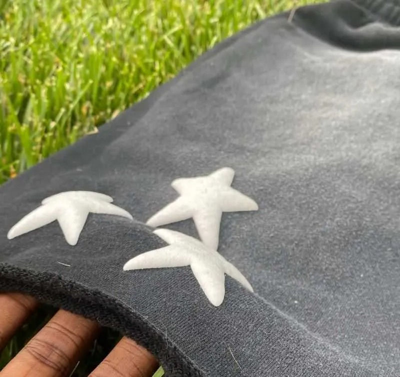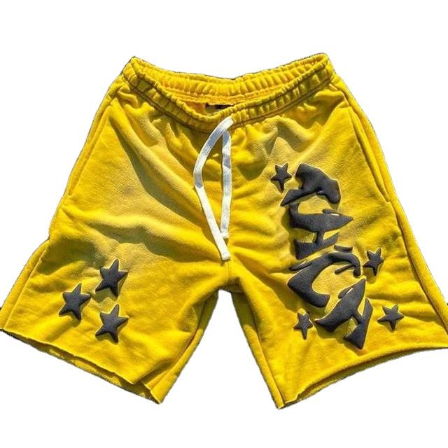 กางเกงขาสั้นผ้าฝ้าย100% ผู้ชายพิมพ์ลายพัฟฟ์เทอร์รี่ฟอกสีกรด