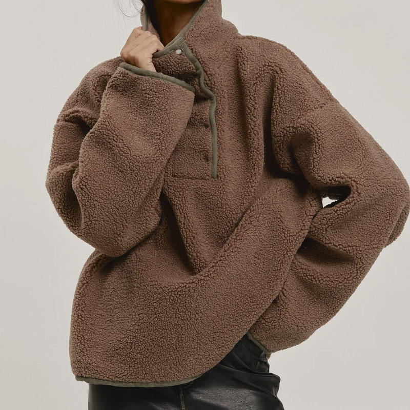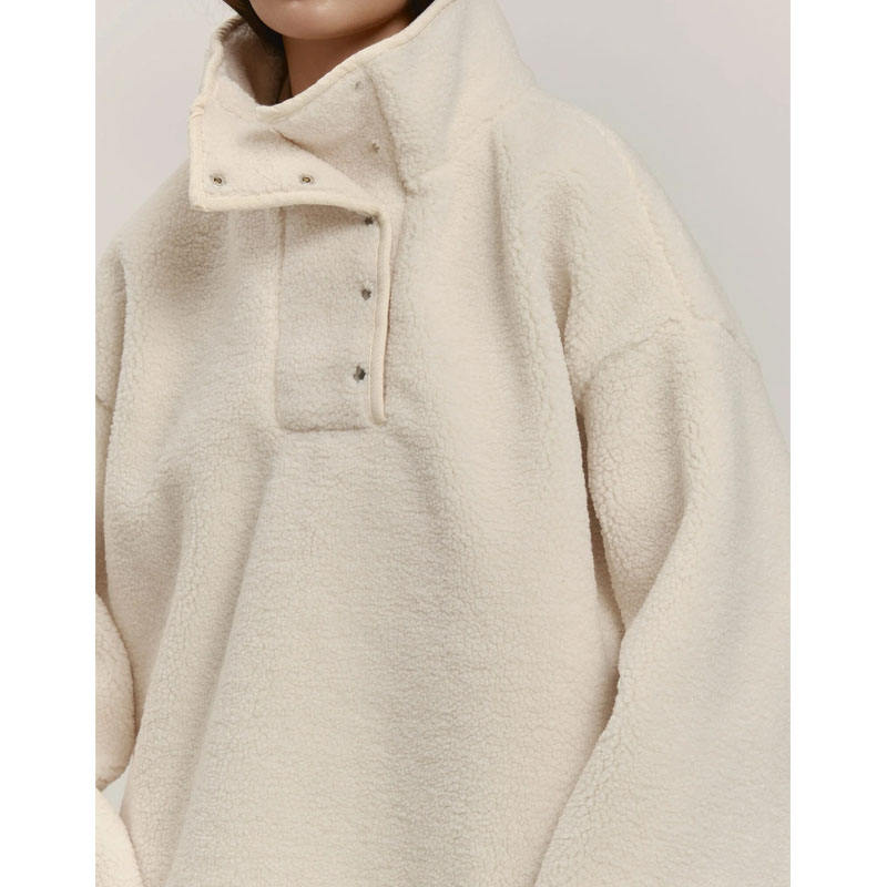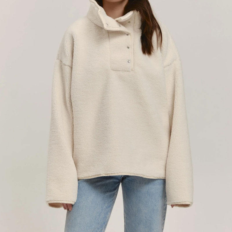 เสื้อฮู้ดดี้ผ้าฟลีซขนแกะแบบสวมหัวติดกระดุมโลหะขนาดใหญ่ ปักโลโก้ตามสั่งจากผู้ผลิตเสื้อผ้า