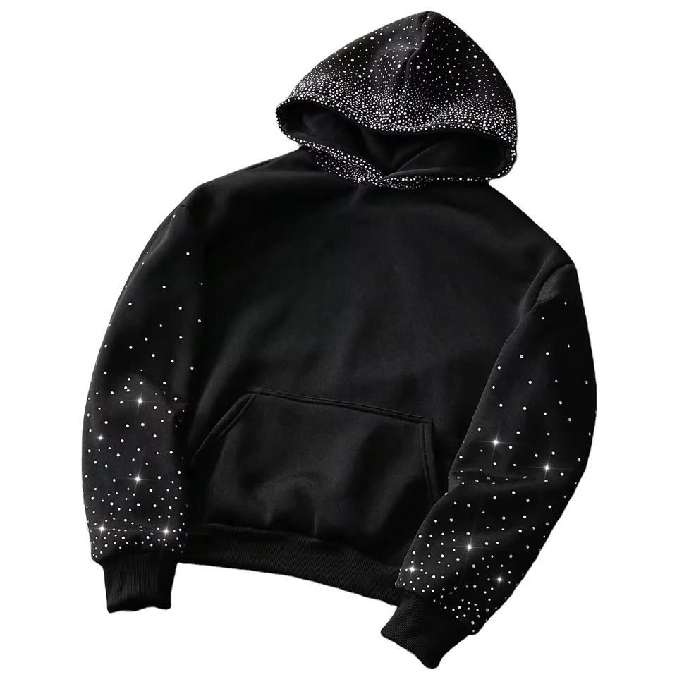 ผู้ผลิตเสื้อผ้า เสื้อฮู้ดดี้โอเวอร์ไซส์ 450GSM ปักลาย งานปักคริสตัล รักษ์โลก สไตล์วินเทจสตรีท ขายดี