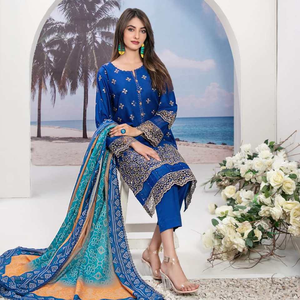ชุดสัลวาร์ คามีซแบบดั้งเดิมของผู้หญิง ผ้าไหมผสมฝ้ายคุณภาพสูง ผลิตโดย FASHIONISTA INTERNATIONAL