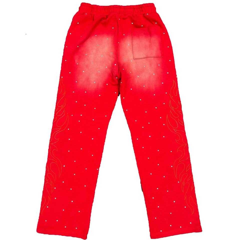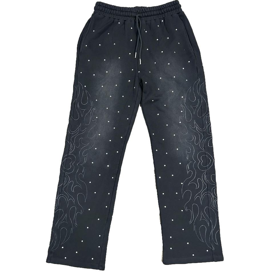 ผู้ผลิตเสื้อผ้าแฟชั่นใหม่เทอร์รี่พรีเมี่ยมผ้าฝ้ายปักโลโก้R Hinestone Baggy Flared Sweatpants Acidwahผู้ชาย