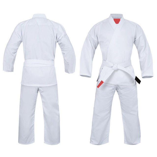 ผู้ผลิตเสื้อผ้า ชุดคาราเต้แบบยูนิเซ็กซ์ ผ้าฝ้ายระบายอากาศได้ดี สวมใส่สบาย เหมาะสำหรับการฝึกซ้อม โลโก้ด้านหน้า คุณภาพขายส่ง