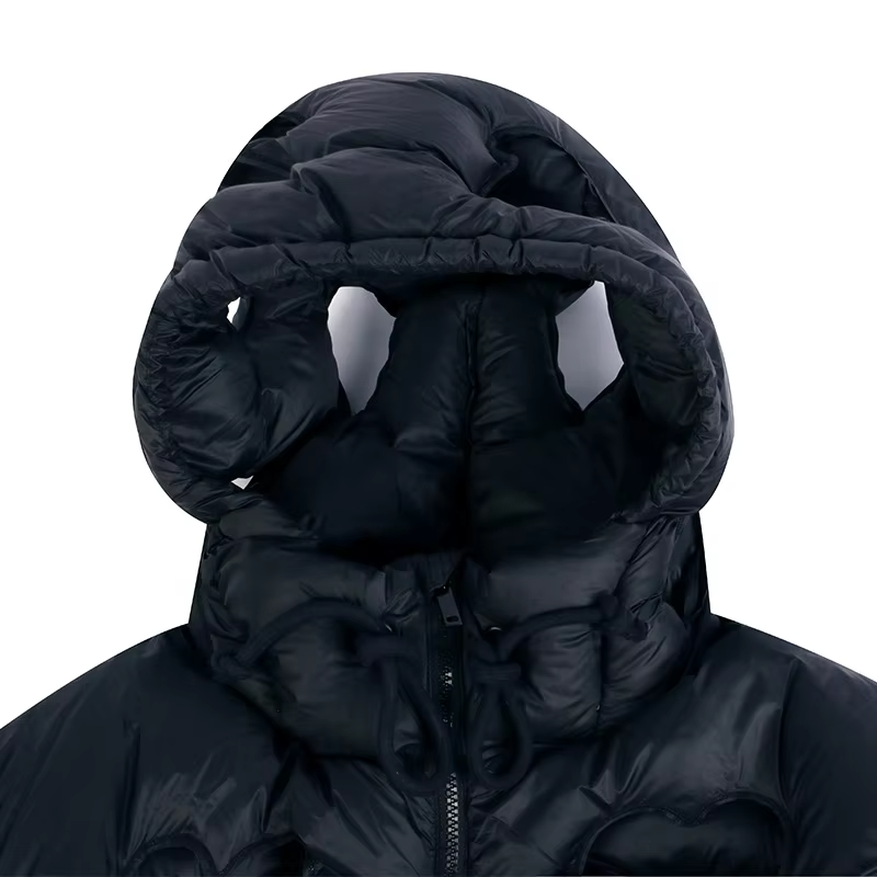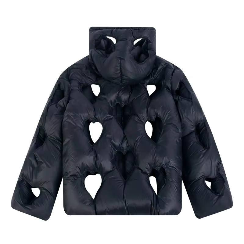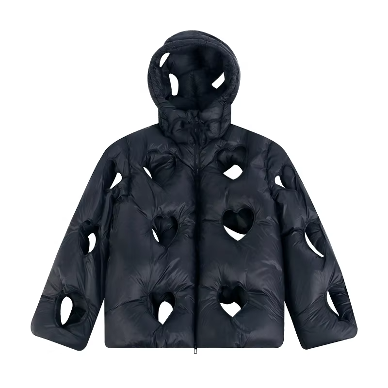 ผู้ผลิตเสื้อผ้าแฟชั่นฤดูหนาว เสื้อแจ็คเก็ตพัฟเฟอร์ทรงหัวใจสีดำแบบโปร่ง ผู้ชาย ออกแบบเองได้ บุนวม รุ่นปี 2026