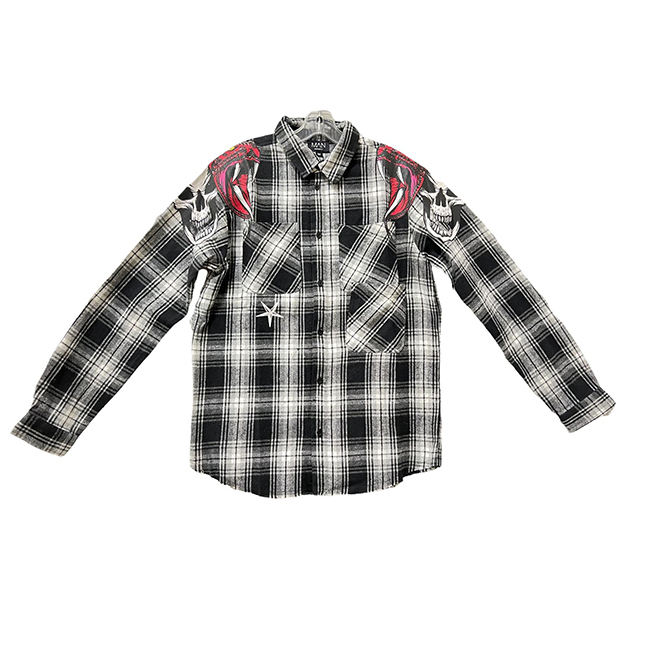 เสื้อเชิ้ตแขนยาวสำหรับผู้ชายเสื้อเชิ้ตลำลองผ้าสักหลาดลายตามสั่ง