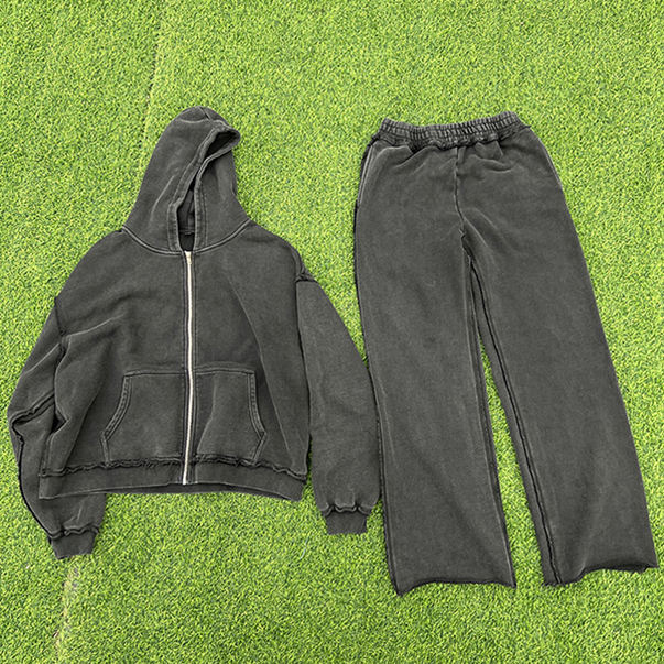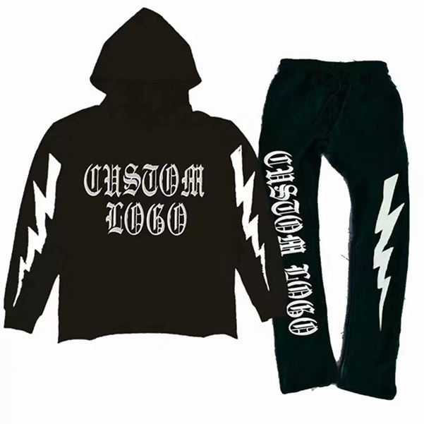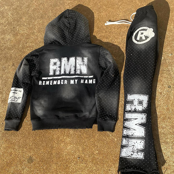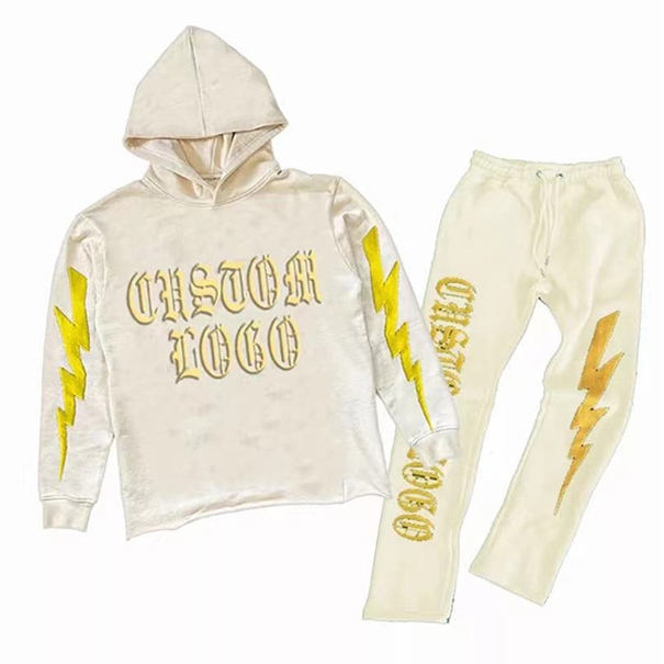 เซ็ตชุดวอร์มกางเกงมีฮู้ดและกางเกงวอร์มแผ่นปักลายบนถนน