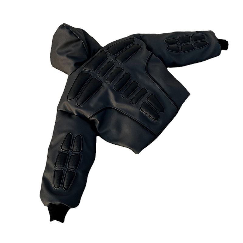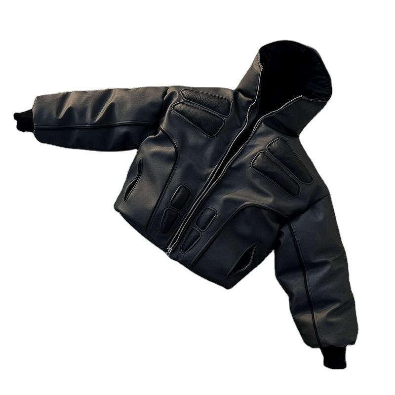 ผู้ผลิตเสื้อผ้า แจ็คเก็ตฤดูหนาวบุหนาสำหรับผู้ชาย แฟชั่นหนังคุณภาพสูง ซิปแบบมีหน้ากากยางโฟม
