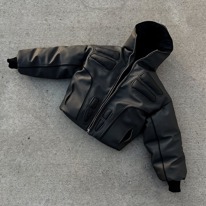ผู้ผลิตเสื้อผ้า แจ็คเก็ตฤดูหนาวบุหนาสำหรับผู้ชาย แฟชั่นหนังคุณภาพสูง ซิปแบบมีหน้ากากยางโฟม