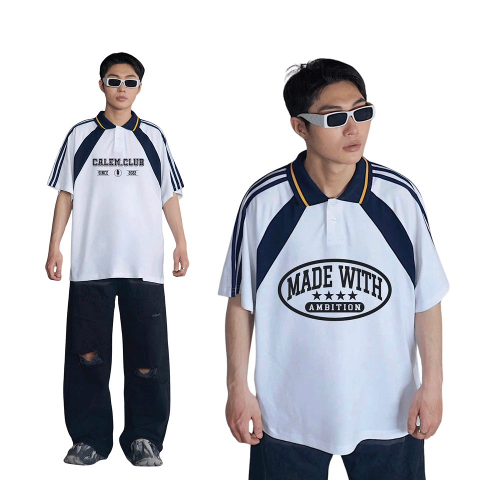ผู้ผลิตเสื้อผ้า รับพิมพ์ลายเสื้อยืดแบบสั่งทำ เสื้อฮิปฮอปทรงหลวมไหล่ตก เสื้อโปโลชาย ผ้าด็อบบี้ 100% ผ้าฝ้าย