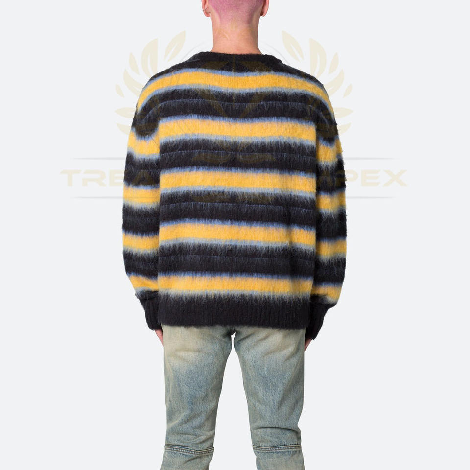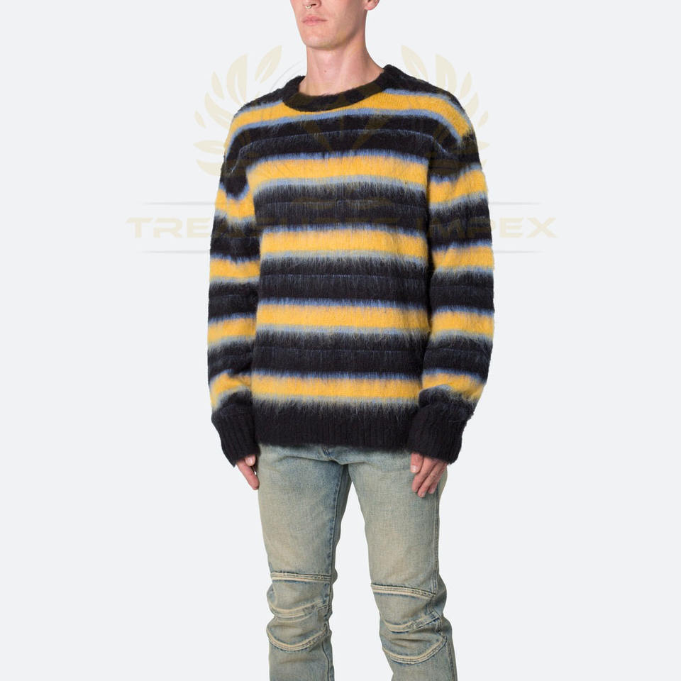 ผู้ผลิตเสื้อผ้า เสื้อสเวตเตอร์ลายทาง ผ้าโมแฮร์ ผ้าฝ้ายพิมพ์ลายสำหรับฤดูหนาว ทรงคลาสสิก ผ้าฝ้าย 100% แขนยาว เสื้อสวมหัว รับสั่งทำ