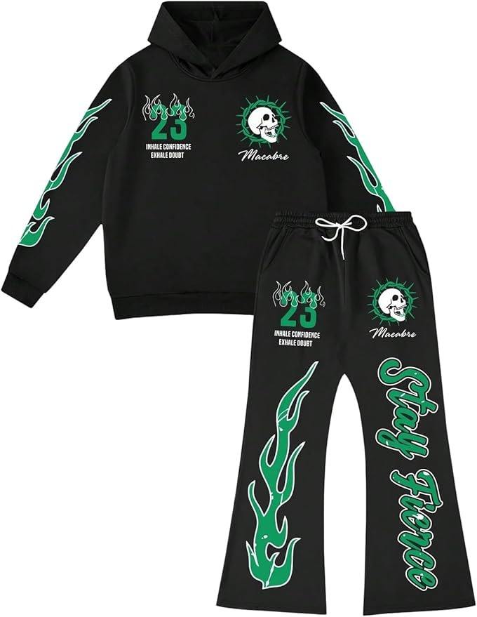 ชุดวอร์มเทคฟลีซแบบยูนิเซ็กซ์สำหรับผู้ผลิตเสื้อผ้า ชุดจ็อกเกอร์พร้อมกางเกงขายาวทรงบานและเสื้อฮู้ดดี้ พิมพ์โลโก้แบบพัฟตามสั่ง