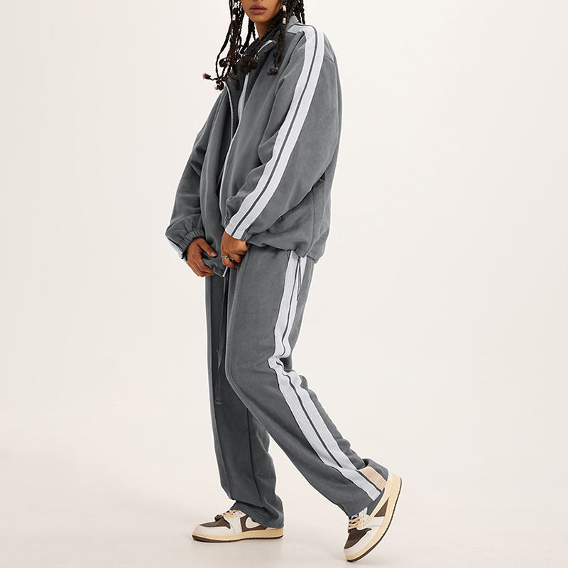 ผู้ผลิตเสื้อผ้า ชุดเซ็ตเสื้อฮู้ดดี้โอเวอร์ไซส์แบบซิปคู่ผ้าฝ้ายหนาน้ำหนักมาก 100% สำหรับฤดูหนาว พร้อมกางเกงขายาว