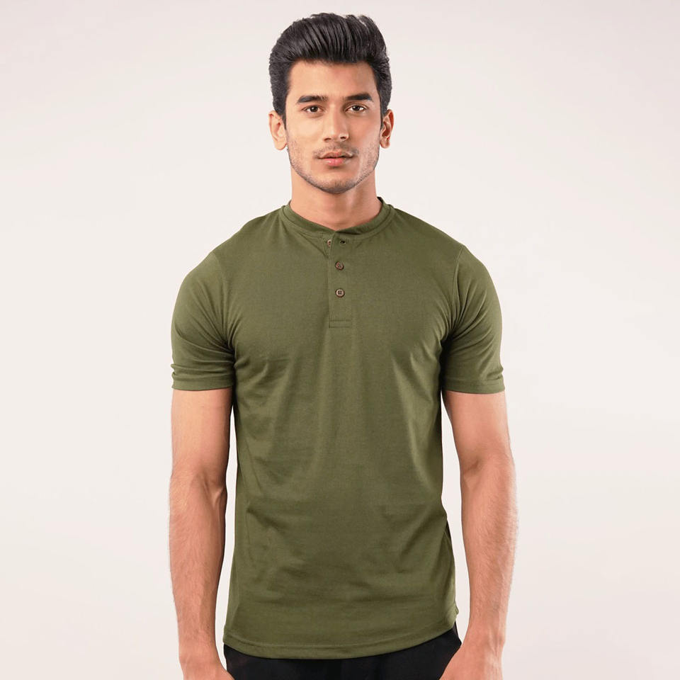 เสื้อยืดเฮนลีย์ทรงเข้ารูปสำหรับผู้ชาย ผ้าคอตตอน 100% หนัก 220 GSM สไตล์สตรีทแวร์