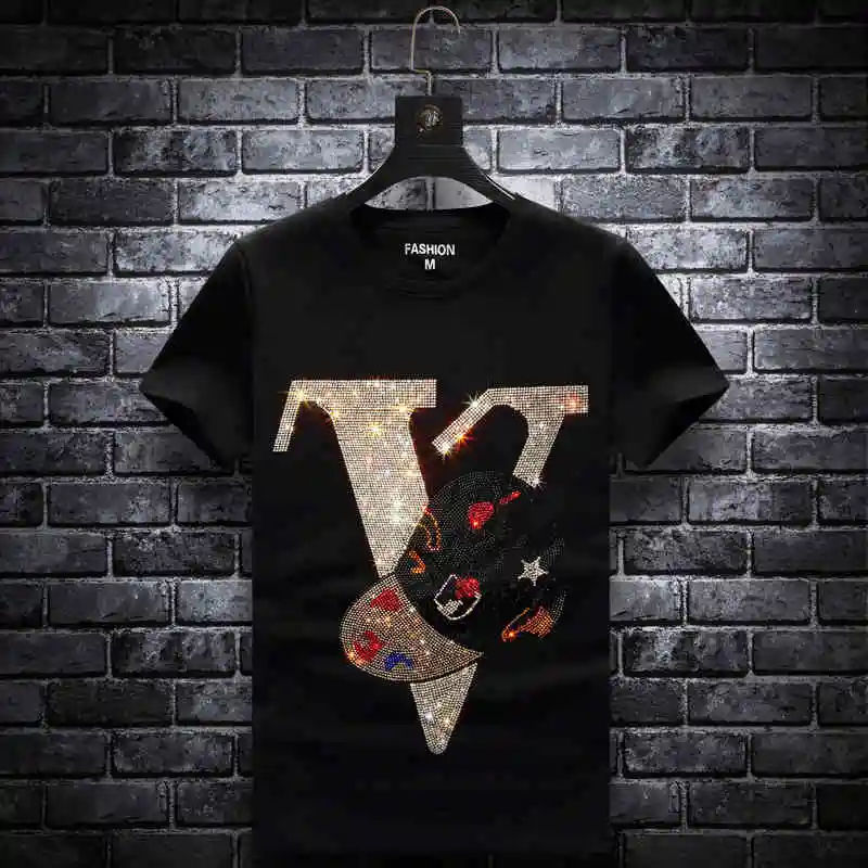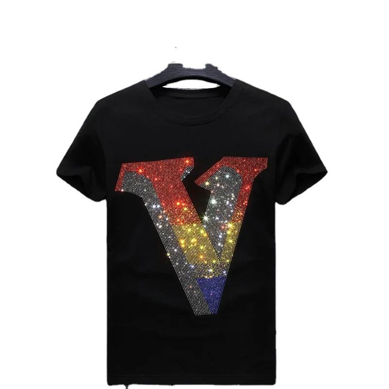 เสื้อผ้าเสื้อยืดพร้อมเสื้อยืดผ้าฝ้ายถ่ายโอน rhinestone แบบกําหนดเอง