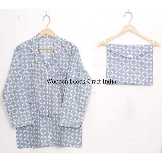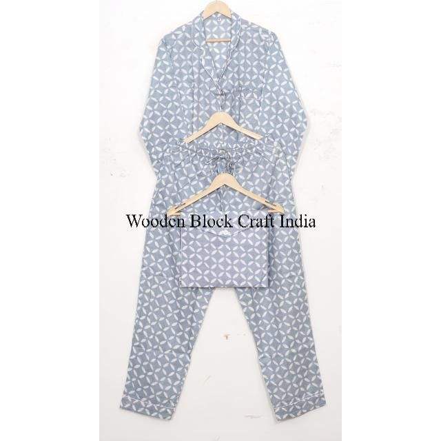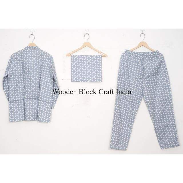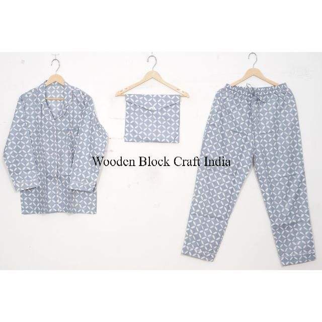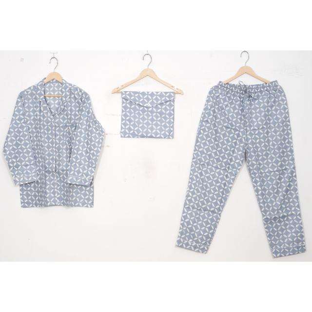 ชุดนอนลำลองลายเรขาคณิตสำหรับผู้หญิง เสื้อแขนยาวคอปก กางเกงขายาว สวมใส่สบาย ทรงหลวม