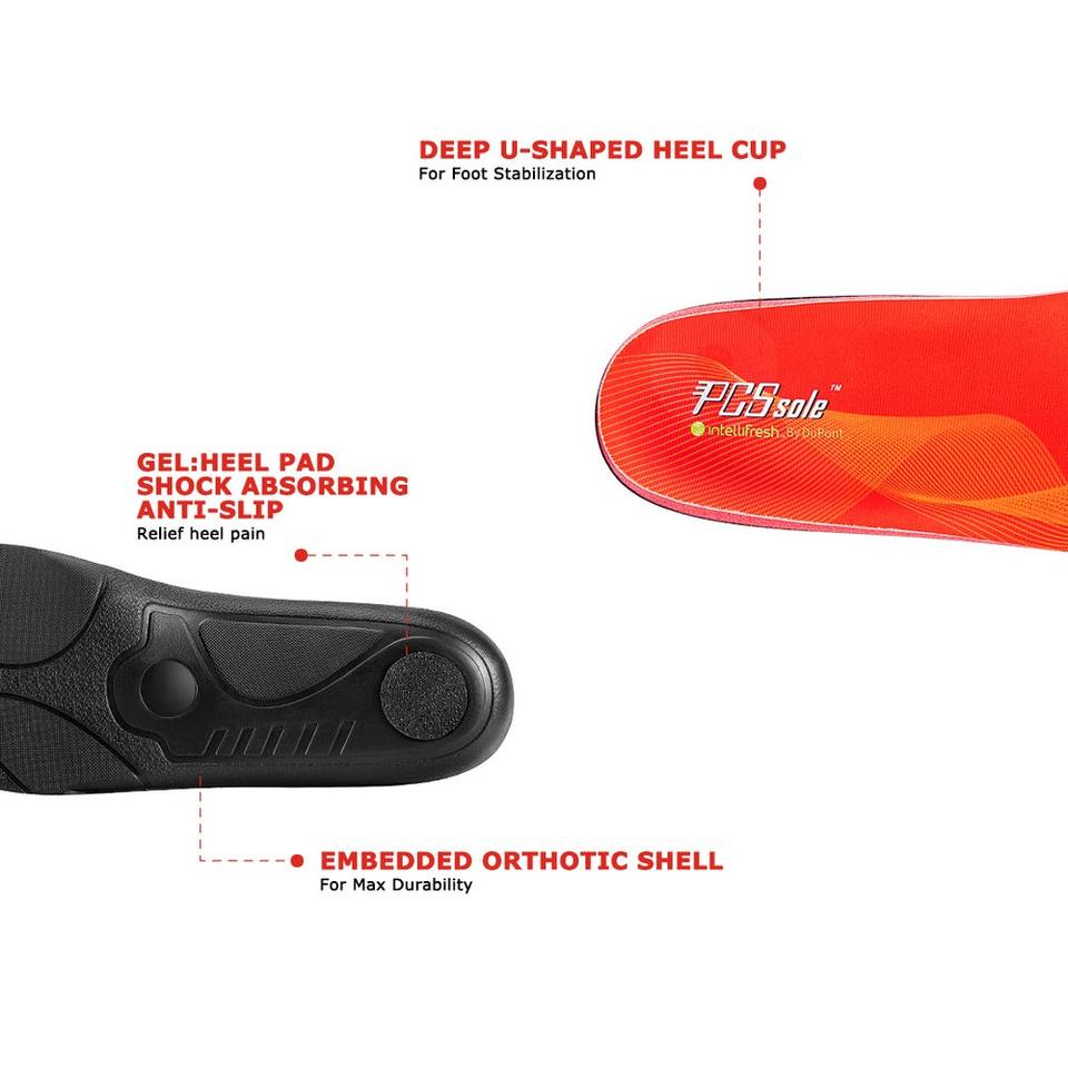 คุณสมบัติ:รองรับส่วนโค้ง, แท่นวางส้นเท้าแบบลึก, กันกระแทกสูงสุด