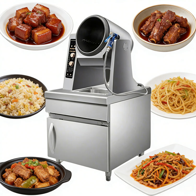 เครื่องผัดทอดอัตโนมัติสำหรับห้องครัวผีหลายยี่ห้อทำงานได้หลากหลาย