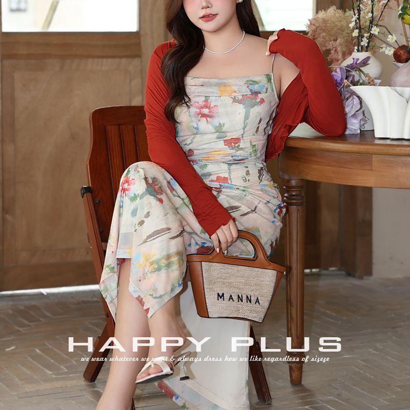 ชุดเดรสสายเดี่ยวพิมพ์ลายดอกไม้สีฟ้าใสสไตล์คลาวด์ไลค์ ไซส์พลัสสำหรับผู้หญิง คอวี สายสปาเก็ตตี้ เอวธรรมชาติ