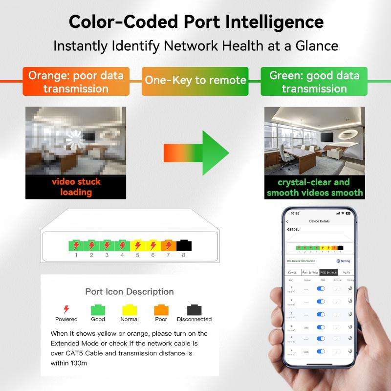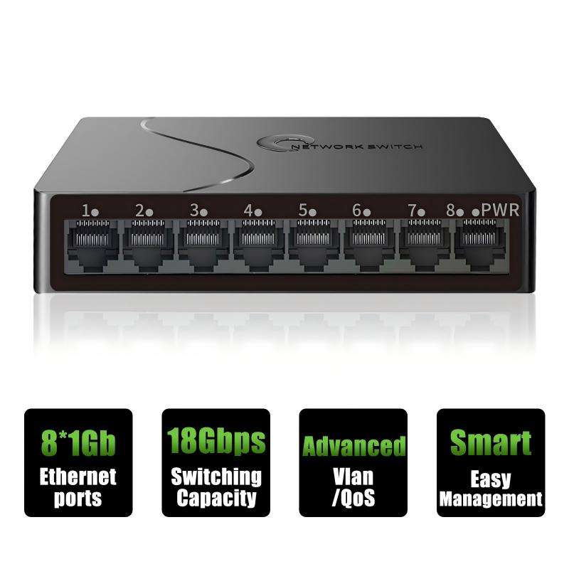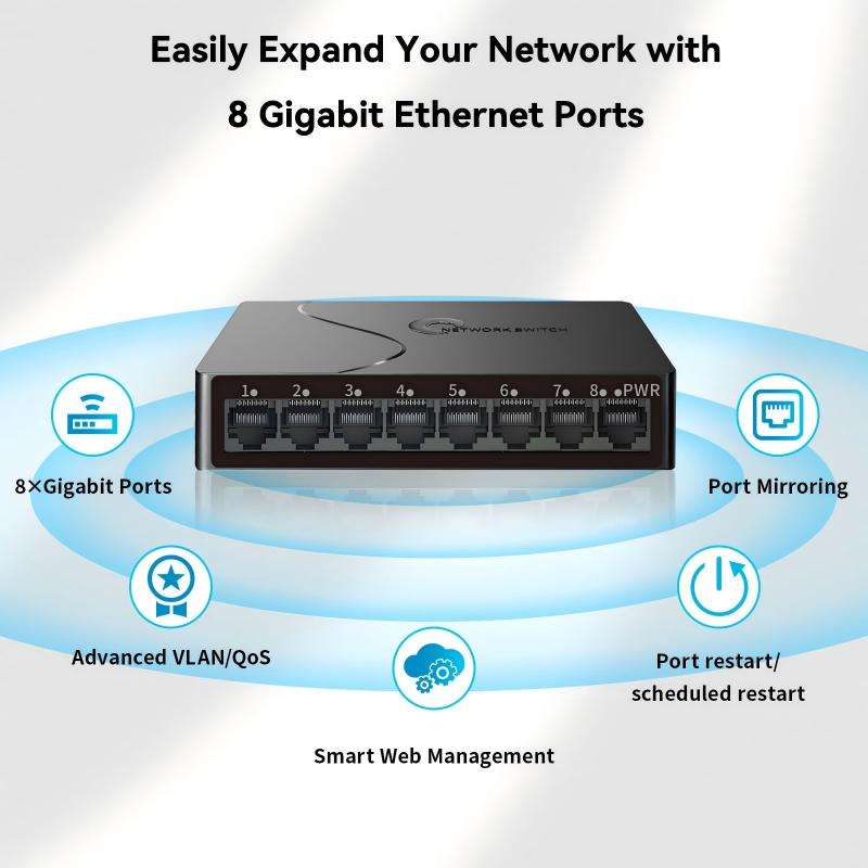 สวิตช์เครือข่ายแบบจัดการผ่านคลาวด์ สำหรับการจัดการเว็บไซต์ รองรับพอร์ต Gigabit 8 พอร์ต ความเร็ว 10/100/1000Mbps พร้อมฟังก์ชัน QoS