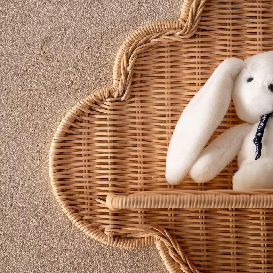 ชั้นวางของติดผนังทรงเมฆ ทำจากหวายธรรมชาติ งานสานด้วยมือ สำหรับตกแต่งบ้านและจัดเก็บของในห้องเด็ก รับผลิตแบบ OEM ODM ขายส่งจากเวียดนาม