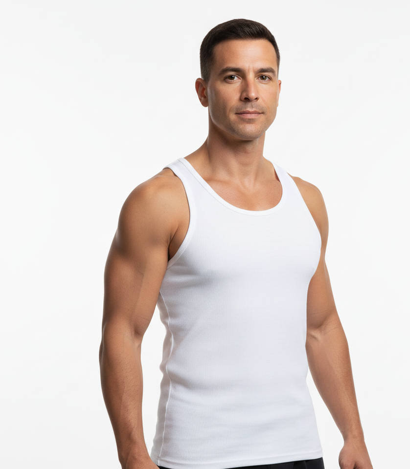 เสื้อกั๊กผ้าฝ้ายสีขาว CloudWeave สำหรับผู้ชาย แบบไม่มีแขน ผ้าระบายอากาศได้ดี ให้ความรู้สึกสะอาดสบายตลอดวัน